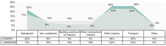 Buildings and construction’s share of global final energy and energy-related CO2 emissions, 2020 (Reference from: https://globalabc.org/resources/publications/2021-global-status-report-buildings-and-construction/, accessed on 29 July 2022).