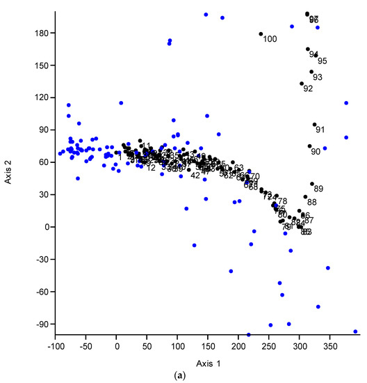 - Oksanen, J.; Minchin, P.R. Instability of Ordination Results under Changes in Input Data Order: Explanations and Remedies. J. Veg. Sci. 1997, 8, 447–454. [Google Scholar] [CrossRef]