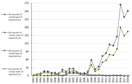 4.1. Trend Analysis of Flow Changes of Virtual Land and Water Resources
