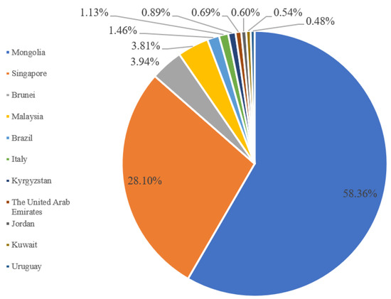 - Qian, L.; Rao, Q.; Cao, B.; Wang, L. Grain trade and its virtual land and water resources estimation between China and countries along the “Belt and Road”. Res. Agric. Mod. 2021, 42, 430–440. [Google Scholar]