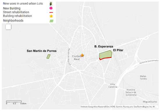 Summary of ISUDS actions with an impact on the urban morphology of Ciudad Real. Source: Authors’ own elaboration, using ArcGIS online and ISUDS Ciudad Real information.