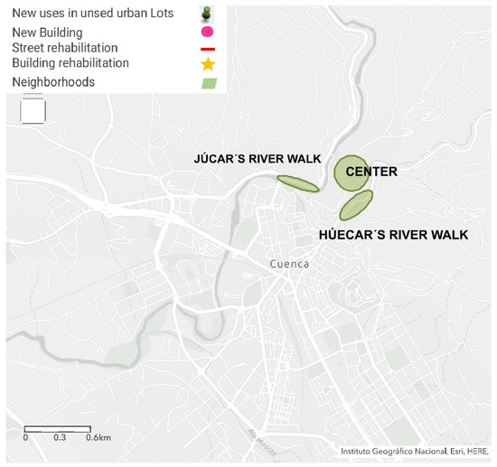 - Ayuntamiento de Cuenca. EDUSI Cuenca 2022. Available online: https://feder.cuenca.es/documentos-estrategia-desarrollo-urbano-cuenca-2017-2022 (accessed on 18 May 2023).