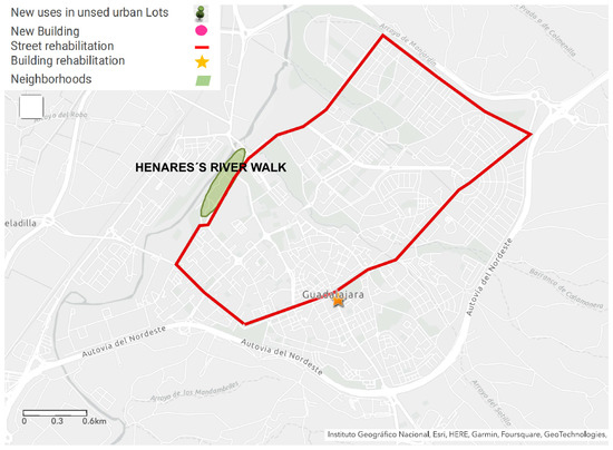 - Ayuntamiento de Guadalajara. EDUSI Guadalajara. Available online: https://edusi.guadalajara.es/gestion-y-seguimiento/ (accessed on 17 May 2023).