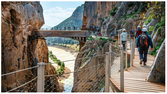 - Málaga Hoy Website. Available online: https://www.malagahoy.es/malaga/impacto-economico-Caminito-del-Rey_0_1446755708.html (accessed on 4 May 2023).