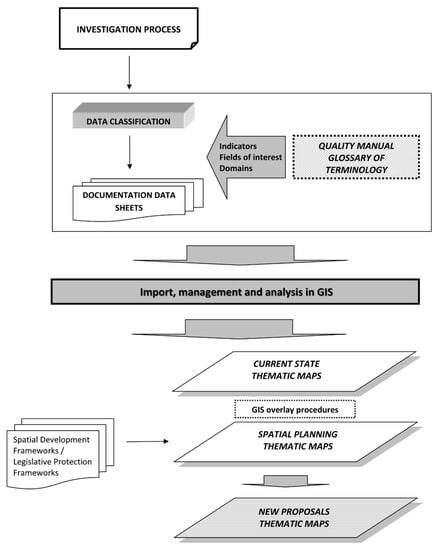 Furthermore, research and analysis process has been performed on two levels: a superior landscape analysis concerning the whole area under investigation, and a more detailed level on the settlement scale with reference to the individual cultural structures, as shown in several other studies [33].