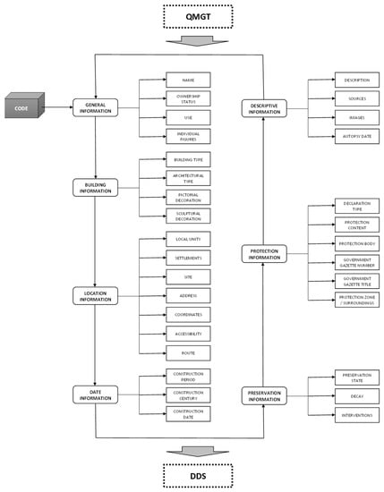 The classification for the buildings was based on architectural indicators, generated by the unique social organization dominating in Eastern Mani along with the particular geomorphology of the landscape. The architectural indicators included in QMGT used structural methods, chronological periods, and the architectural typology found in both the fortified facilities and religious temples located in the region. More specifically, the corresponding indicators for the classification of information with reference to monuments are presented in Figure 3.
