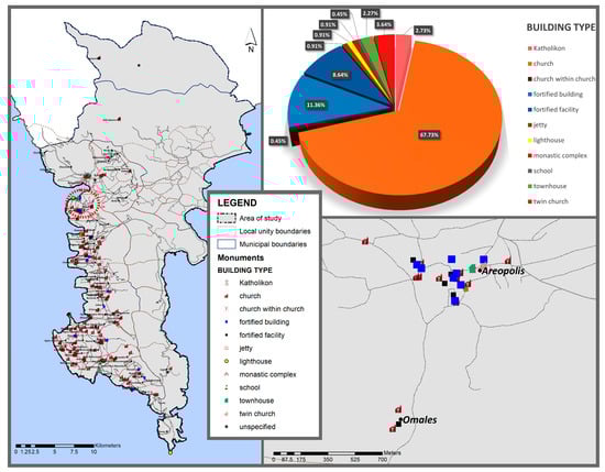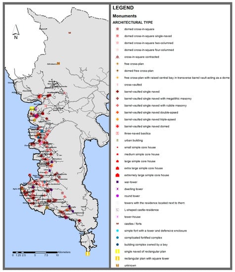 Following a further analysis of the prevailing architecture in Mani’s landscape, the monuments of the two main monument categories (ecclesiastical buildings and fortified buildings/facilities) are classified on the basis of their architectural type (Figure 8).