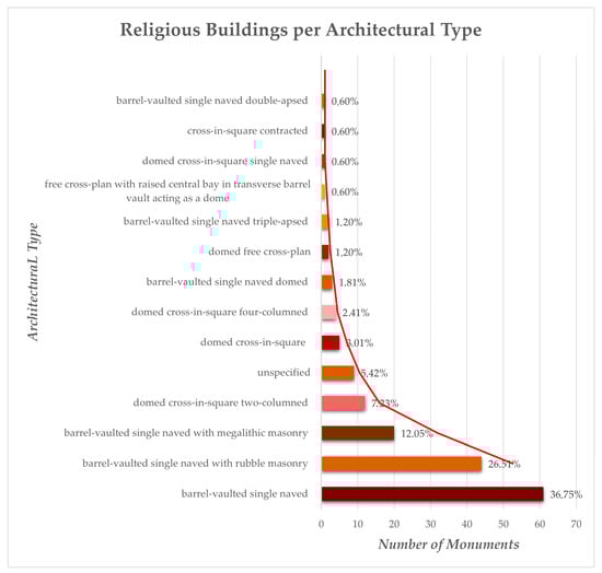The elaborated chart presenting the frequency of religious buildings based on their archi-tectural type.