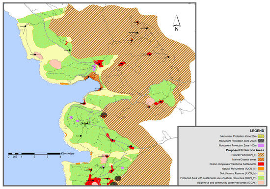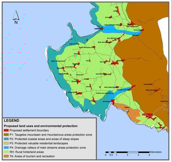 - The protection and promotion of natural heritage (SDGs 11, target 11.4, “Strengthen efforts to protect and safeguard the world’s cultural and natural heritage”), through: (a) the design of zones/areas of environmental protection and the recognition of the total peninsula of Eastern Mani as a Protected Natural Formation and Landscape (IUCN_V), for the control and definition of special regulations and restrictions on land use and construction activities, and (b) the design of Fire Protection Zones in high-risk areas.