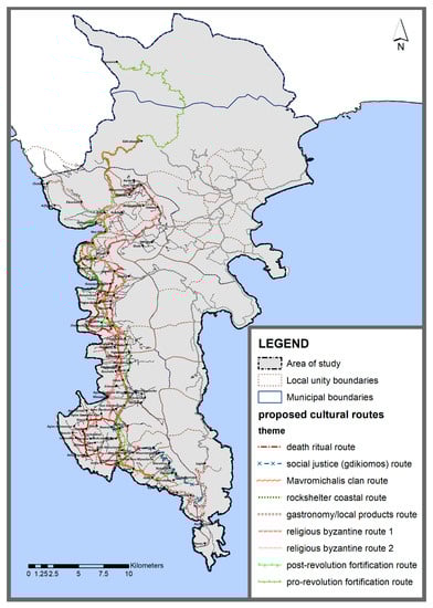 New thematic CRs are proposed to connect the TCH and environmental values of the region under study, with the landscape’s geomorphological characteristics and intangible content. The themes of the new CRs emerged from the distinctive way of life, the social organization, and the strong tradition in Eastern Mani over the years: death rituals, martial character, strong religious consciousness, gastronomy, agricultural and local products, etc.