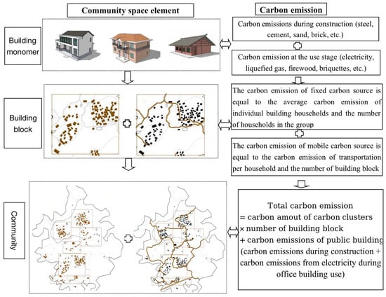 Thus, this paper measures rural carbon emissions in a logical “bottom-up” relationship, as shown in Figure 2, which includes carbon emissions from buildings and transport.