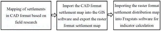 As can be seen in Table 1, X1, X2, X3, and X10 are obtained through basic research in the case villages, while the other indicators X4–X9 are obtained through the Fragstats software 4.2, which is operated as follows (Figure 4).