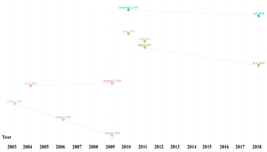 A total of 16 author clusters have been formed in the field of rural sustainability and land use research, each with its own distinct research focus and emphasis (Figure 7). Notably, the team represented by Liu Yansui from the Institute of Geographic Sciences and Natural Resources Research, Chinese Academy of Sciences, has had a significant impact in this field. Their research encompasses various aspects of China’s rural sustainable development, including land consolidation for rural development, land use and rural sustainable development in China, and urbanization and rural sustainable development. Another influential author cluster is led by Long Hualou, also from the Institute of Geographic Sciences and Natural Resources Research, Chinese Academy of Sciences, which primarily focuses on the analysis of China’s rural transformation and development. Additionally, the team led by Salvati Luca from the Council of Research in Agriculture primarily studies the economic and environmental sustainability of rural areas in Italy. The team led by Joern Fischer from Leuphana University Lueneburg mainly researches conservation policies for traditional agricultural landscapes. These author clusters contribute to the diverse research perspectives and expertise in the field of rural sustainability and land use.