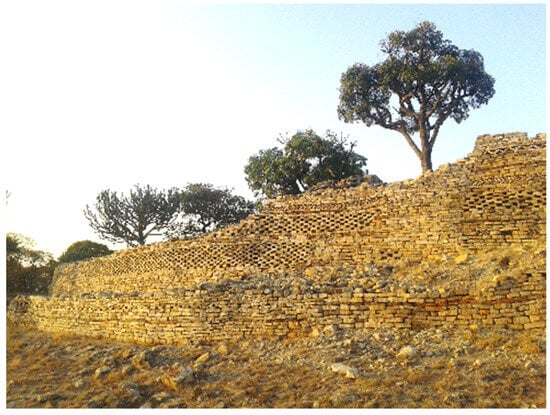 Even Tilley [] echoes similar sentiments by stipulating that domestic dwellings are the material media through which relations between self and society are both objectified and negotiated. A detailed appreciation of this logic or ‘invisible bonding with place’ certainly goes a long way in resolving the perennial challenge to archaeologically detecting Rozvi signatures from related Khami-phase sites in southwestern Zimbabwe. Despite having multiple forms of oral traditions and historical text affirming that Khami-phase sites, especially those in the Insiza district, are part of the Rozvi past, it has been quite difficult to articulate how the historical Rozvi actually relate to and claim ownership of these ancient monuments [,,,,,]. This is the same challenge that prompted the renewed excavation of three former Rozvi capitals, namely, Danamombe (Figure 4), Naletale (Figure 5), and Zinjanja (Figure 6), illustrated on Figure 1 above.