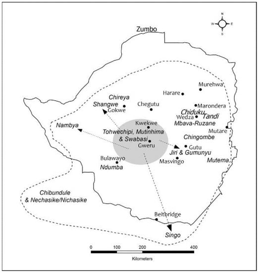 - Mazarire, G.C. Reflections on Pre-Colonial Zimbabwe, c.850–1880s. In Becoming Zimbabwe: A History from Pre-Colonial Period to 2008; Raftopoulos, B., Mlambo, A.S., Eds.; Weaver Press: Harare, Zimbabwe, 2009. [Google Scholar]