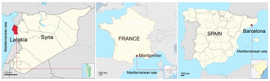 The methodology employed in this study comprises three main stages. Figure 1, shows the location and maps of the study areas for the three cities: Latakia, Montpellier, and Barcelona.