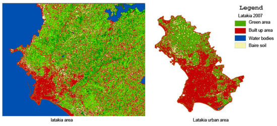 Green & built-up areas in Latakia. Source: [].