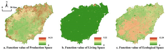 Evaluation Results of the Spatial Function Value of PLEs in Hainan Island in scale of 30 m × 30 m.