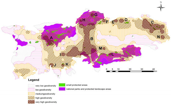 - Geological diversity (lithological units, stratigraphic representation, and 1:500,000 scale, according to Lexa et al. [76]);