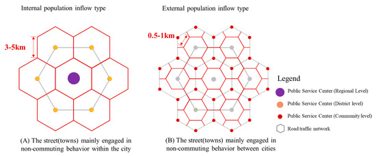 | Internal inflow | Pingjiang Subdistrict | Suzhou | 449.15 | 0.48 | We divided the centrality of the two ‘street township’ levels into four categories by weighted entry centrality. The first class is above 800 (within the city) and below 0.3 (between cities); The second class is 400–800 (within the city) and 0.3–0.5 (between cities); The third class is 100–400 (within the city) and 0.5–0.7 (between cities); The fourth class is below 100 (within the city) and above 0.7 (between cities). |
