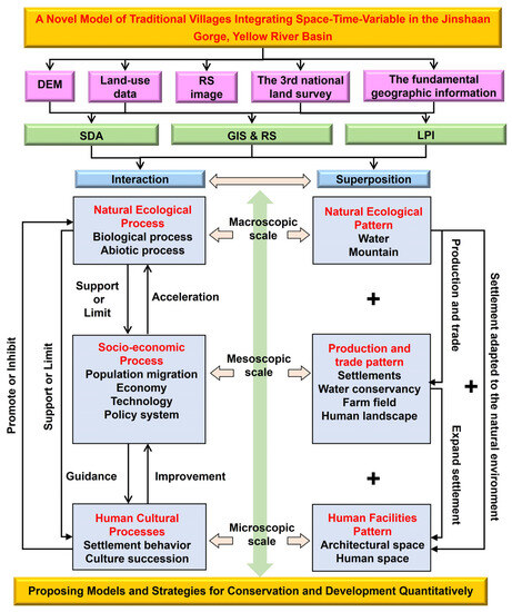 At the mesoscopic scale, the research focused on the traditional villages and surrounding landscapes in Jiaxian by using SDA, GIS, and the RS method.