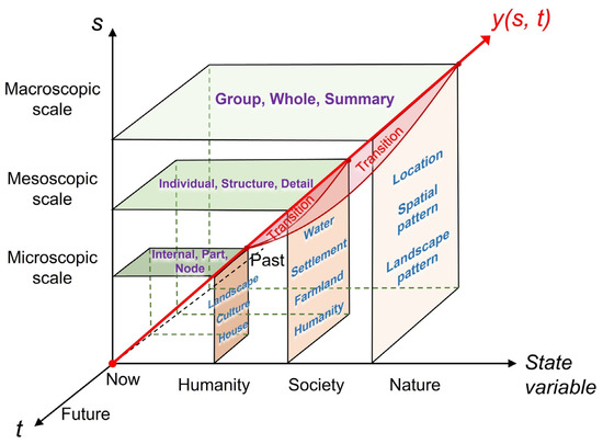 This study constructed a model to investigate the evolution of landscape patterns in traditional villages of Jinshaan Gorge, based on multi-temporal, multi-spatial, and muti-variable evolutionary processes using three spatial scales, temporal scales, and sustainability variables (Figure 3). Together, they form a dynamic and quantitative system which can be used to propose strategies for sustainable conservation and development in traditional villages.