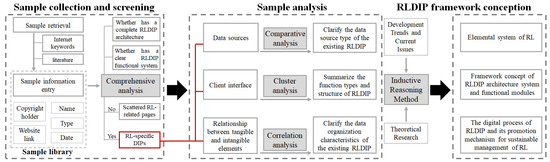 - Thirdly, the RLDIP framework conception. On the basis of sample analysis, an inductive reasoning method is used to summarize the development trend and current problems of the samples; in combination with previous theoretical research and practical needs, efforts are made to clarify the elemental system of RL, propose the RLDIP framework concept and work out the digital implementation process to promote the RL sustainable management.