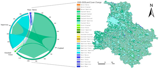 Trend of land cover changes in Tongzhou District from 2000 to 2020.