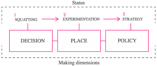 26]. In this interpretation, the article’s core is the ability to activate decision-making and policy-making processes through place-making, capable of creating physical and conceptual spaces dedicated to expressing grassroots actions [