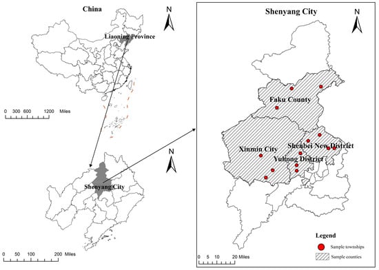 Population aging is an undeniable trend in China. Notably, the northeast region is grappling with the country’s most severe population aging challenges. Data from the seventh national census reveal that the aging rate of Liaoning Province tops the nation at 25.72%, marking it as the province with the most pronounced population aging. A combination of low birth rates and high net migration rates primarily drives the aging issues in the three provinces of Northeast China. A declining economy, widening of regional differences in urbanization level, aggravation of the contradiction between urban and rural areas, and continuous negative growth of population render the rural development of the three provinces of Northeast China volatile []. As the capital of Liaoning Province and the largest central city in Northeast China, Shenyang demonstrates outstanding political, economic, and cultural-center functions. This prominence generates a powerful radiative effect and drive, luring the rural population to migrate to urban areas, and leading to a widespread idleness of surrounding rural homesteads. Shenyang (41.20°~43.04° N, 122.42°~123.81° E) is located in the south of Northeast China and the central part of Liaoning Province, which is the center of the Northeast Asian economic circle and the Bohai economic circle (Figure 3). Shenyang spans a total area of 12,860 square kilometers and encompasses 13 county (district) level administrative regions, including 10 municipal districts, one county-level city, and two counties. By the end of 2020, Shenyang housed a permanent population of 9.073 million, consisting of 7.668 million urban dwellers and 1.405 million rural residents, resulting in an urbanization rate of 84.51%. Approximately 600,000 rural homesteads exist within the city, spanning an area of about 568.7 square kilometers. On average, each homestead covers an area of about 836.7 square meters. Roughly 21,000 homesteads remain idle, occupying an area of about 18.2 square kilometers, yielding an idle homestead rate of 3.5%. In 2020, Shenyang was designated as one of the pilot areas for the new round of rural homestead system reform in the country, which has offered a vast number of samples in support of this research. The data of this study are derived from a sample survey of farmers in Shenyang conducted in July 2021. This research adopts a mixed approach of stratified sampling and simple random sampling to select sample farmers. Firstly, in adherence to the principle of far, middle, and near to the county, three streets were randomly selected at three levels. Secondly, following the principle of high, medium, and low homestead idle rates, each street randomly selected three villages within three tiers. Finally, 12 farmers from differing families were randomly chosen from each village. A total of 405 questionnaires were gathered from four districts, 13 streets, and 35 administrative villages. After eliminating the questionnaires with distorted or missing key information, 403 valid questionnaires were secured, boasting an effective rate of 99.51%. The farmer questionnaire survey primarily employed a method of a “one-to-one” interview between the farmer and the investigator. The main contents of the questionnaire encompass the farmers’ family situations, their understanding of homestead value, subjective satisfaction, and so on.