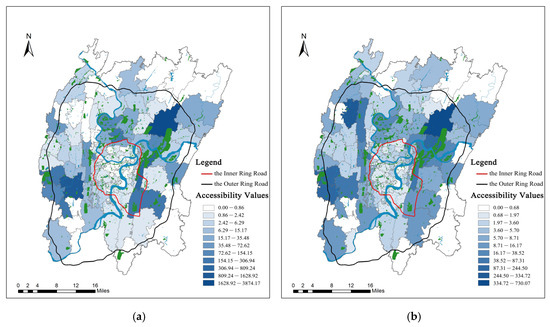 3.1. Spatial Distribution of Urban Green Space Accessibility