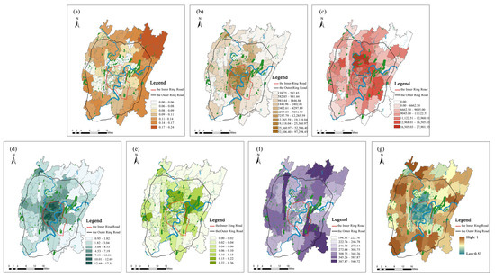 3.3. Spatial Correlation between Urban Green Space Accessibility and Related Variables
