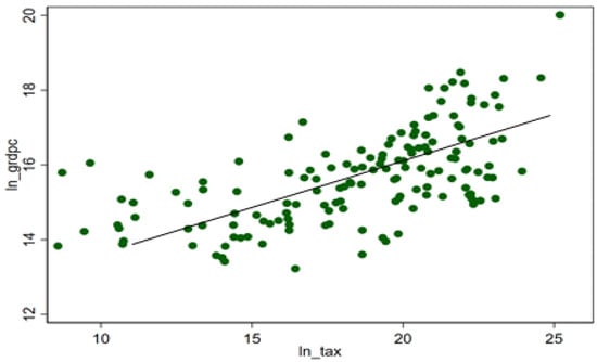 There are positive coefficients between the amount of URPTAX in each region and its GRDP in Figure 1. This indicates a positive economic impact attributed to URPs, with these incentives contributing to regional GRDP. Furthermore, a 1% increase in tax incentives due to such initiatives is associated with a proportional increase in GRDP, suggesting an elastic relationship.