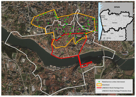 In this study, we combine several information sources and procedures. We use bibliography for contextualization, statistical data and other objective references, namely on public policy instruments, and the results of an intensive work of direct collection of quantitative information (with closed responses) and semi-structured interviews of a qualitative nature. We also used data resulting from previous research, such as analyses of the morphology and structure of Porto and on the Airbnb platform and short-term accommodation in the city of Porto and its recent changes [45], updated and now deepened in direct contact, namely retailers and other actors who are simultaneously residents and users of the city centre.