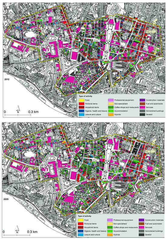 Economic activities (2012–2020) in Porto’s city centre. Source: own elaboration, based on functional surveys.
