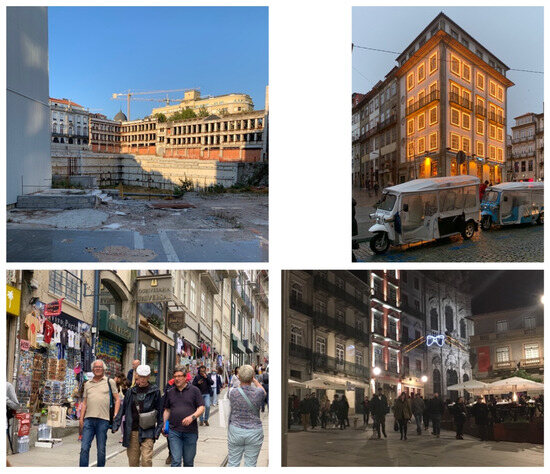 - Fernandes, J.A.R.; Tenreiro, J.P.; Figueiredo, P.M.; Chamusca, P.; Pinto, J.R. A Baixa do Porto: Arquitetura e Geografia Urbana (2010–2020); Book Cover: Porto, Portugal, 2021. [Google Scholar]