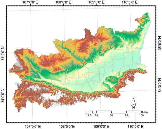 The data involved in this study include both geospatial data and statistical data such as population, economy, and grain yield. The derivation of these data is detailed as follows: ① the 30 m DEM data for the Guanzhong urban agglomeration were sourced from the geospatial data cloud platform; ② vector data delineating the boundaries of the county-level administrative regions in Guanzhong were obtained from the Shaanxi Province Geographic Information Public Service Platform; ③ land use data for the years 2010, 2015, and 2020 were sourced from the National Geographic Information Resources Catalog Service System; ④ statistical data related to population, economy, and grain yield were sourced from the “National Statistical Yearbook”, the “Shaanxi Province Statistical Yearbook”, and the websites of statistical bureaus for relevant prefecture-level cities.