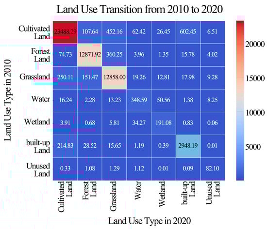 Land Use Type Transition Heatmap of the Guanzhong urban agglomeration during 2010–2020. Image source: Drawn by the author.