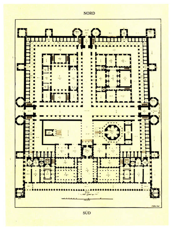 - Dioklecijanova palača, Tlocrt Dioklecijanove palače: Wikipedia. Available online: https://commons.wikimedia.org/wiki/File:Tafel_001a_Spalato_-_Grundriss_vom_Kaiserpalast_-_Robert_Adam_1764_-.jpg (accessed on 3 July 2023): Figure 3.