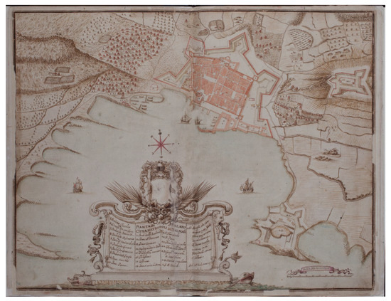 The emergence of the third city framework, from the 17th century, was influenced by questions of defence rather than by the dynamics of growth. As a result, the city was developed to become a military stronghold: On the land side, it acquired a line of ramparts with bastions that were built around the old stone walls and separate fortifications located on a hill east of the bay, which defended the paths towards the city and the port from the seaward side [14]. These fortifications encircled the entire city, apart from the western and eastern suburbs (Figure 4).