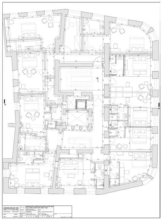 Second floor plan of Nakić Palace, the 2018 design for the adaptation of the palace into a hotel.
