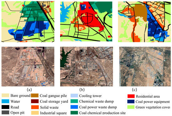 Sentinel-2 local control of site-scale classification. (a) Typical coal power and coal chemical regions. (b) Typical residential areas. (c) Typical coal and coal power areas.