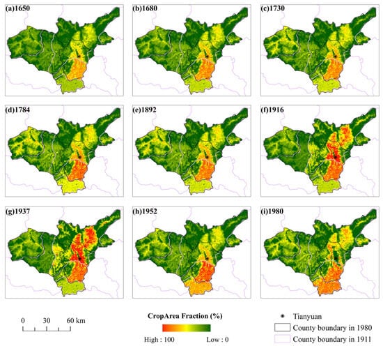 Reconstruction of Spatial–Temporal Changes in Cropland Cover from 1650 to 1980 in Taiyuan City