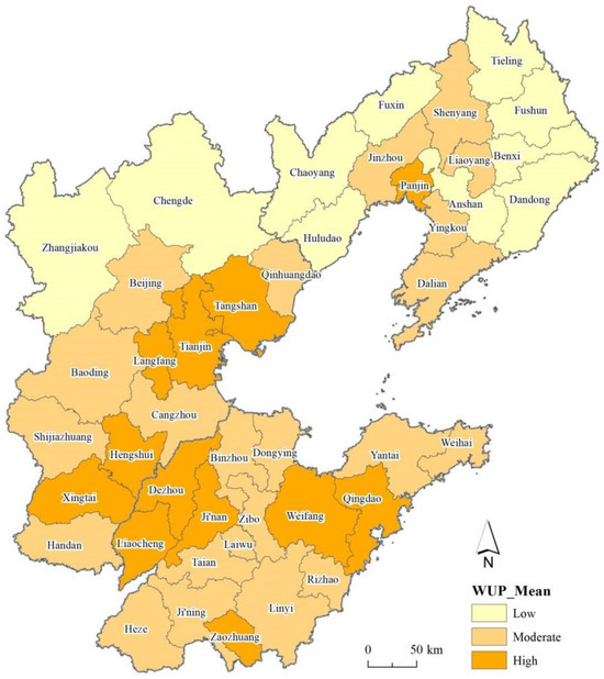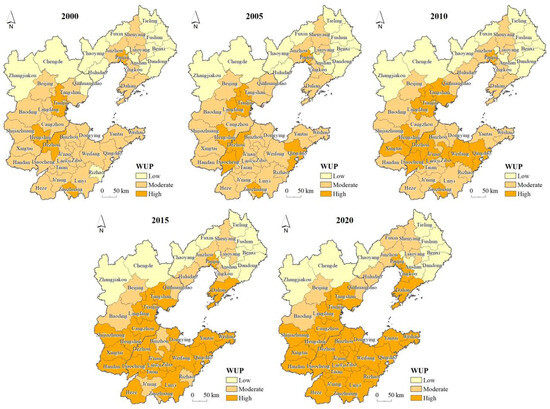 Figure 5. Distribution of WUP values in the Bohai Rim region from 2000 to 2020.