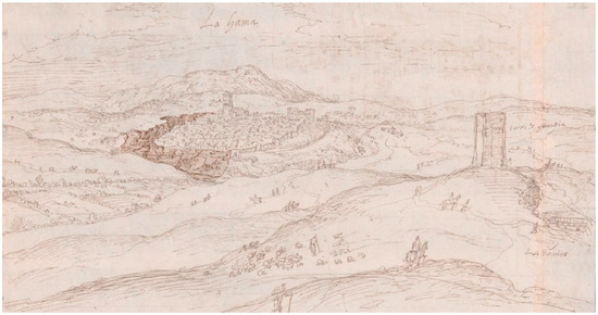 The Tajos appeared represented for the first time in the view of the city and its surroundings drawn by Anton van der Wyngaerde in 1567, Figure 2. At that time the walls were still preserved, larger in the western area of the city (in the right side of the image), because this part lacked the large natural and vertical ditch that the gorges represented when bordering the city on its north, east, and south sides.