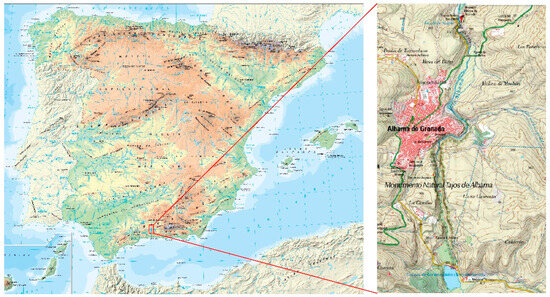 - Decreto 2973/1975, 31 October, por el que se Declara Conjunto Histórico Artístico el Casco Antiguo de la Ciudad de Alhama de Granada y Paraje Pintoresco los Tajos de Dicha Ciudad. BOE 284, 26 November 1975. Available online: https://www.boe.es/diario_boe/txt.php?id=BOE-A-1975-24272 (accessed on 2 January 2024).