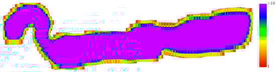 The photogrammetry to color the point cloud was generated by 4042 RTK georeferenced images captured by the Mavic 3 pro UAS operating at an average flight altitude of 114.58 m involving a 3.3 cm GDS. The photographs overlap distribution over the whole surveyed area could be seen in Figure 20, most of which was covered by more than 10 photographs.