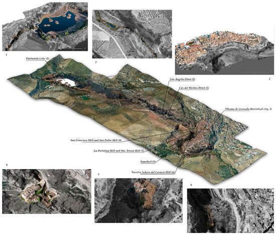 The model obtained should serve, on the one hand, as a valuable tool for knowledge and analysis of all the elements (river, ditches, dams, mills, aqueducts, and paths) that made up this picturesque landscape (Figure 23), and on the other hand, as a basis for the future rehabilitation and architectural restoration projects that would have to be undertaken to preserve this cultural and landscape legacy.