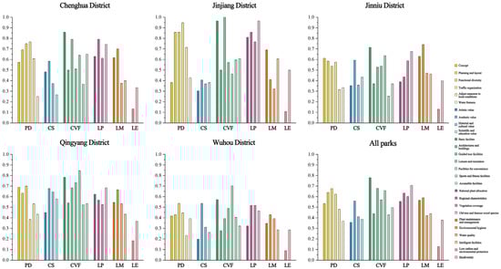 Chicago/Turabian StyleZhang, Sining, Haoxiang Song, Xiaopeng Li, and Shixian Luo. 2024. "Urban Parks Quality Assessment Using Multi-Dimension Indicators in Chengdu, China" Land 13, no. 1: 86. https://doi.org/10.3390/land13010086
