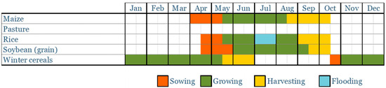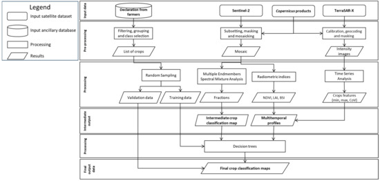 - Fontanelli, G.; Crema, A.; Azar, R.; Stroppiana, D.; Villa, P.; Boschetti, M. Agricultural Crop Mapping Using Optical and SAR Multi-Temporal Seasonal Data: A Case Study in Lombardy Region, Italy. In Proceedings of the International Geoscience and Remote Sensing Symposium (IGARSS), Québec City, QC, Canada, 13–18 July 2014; pp. 1489–1492. [Google Scholar]